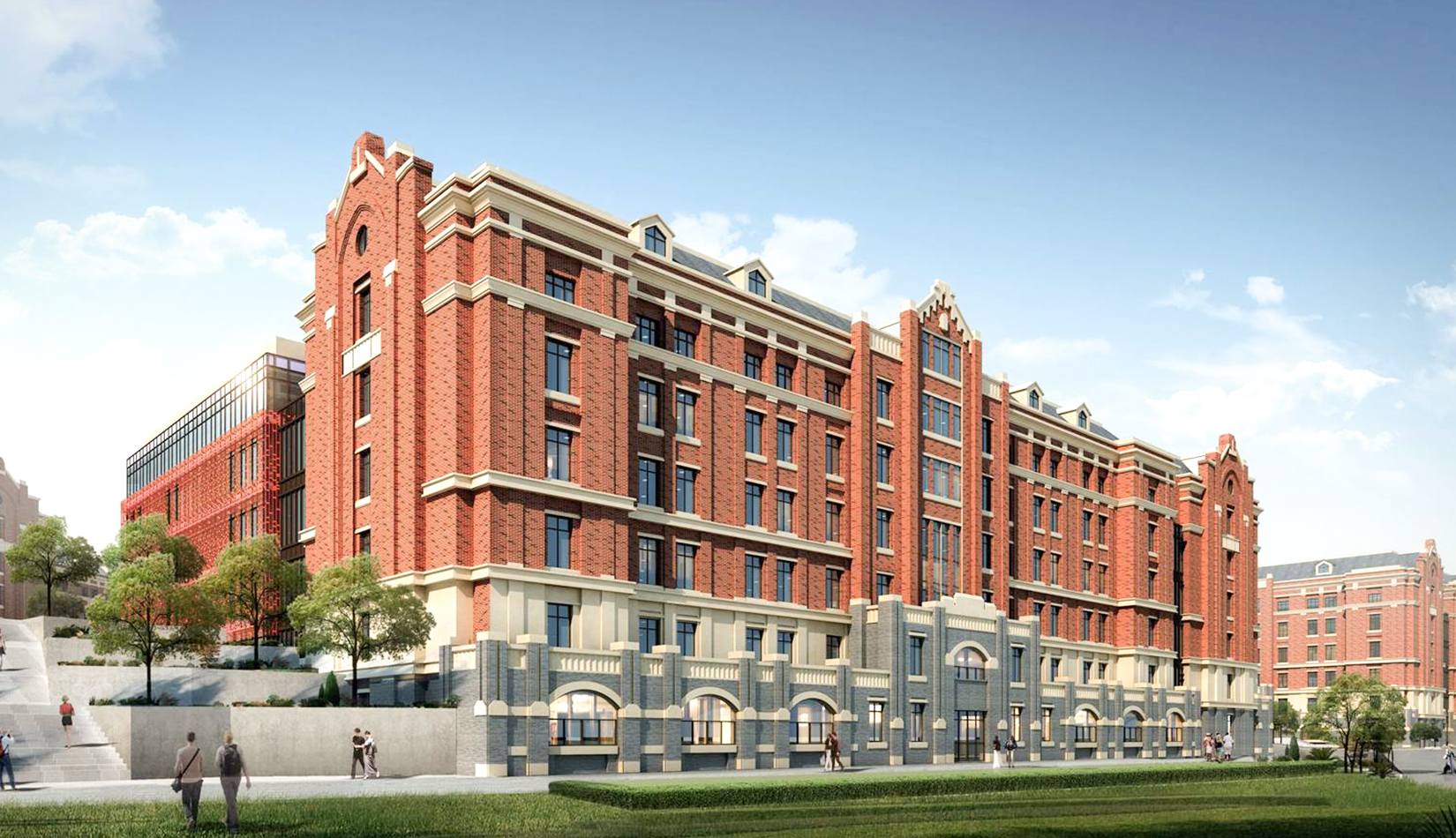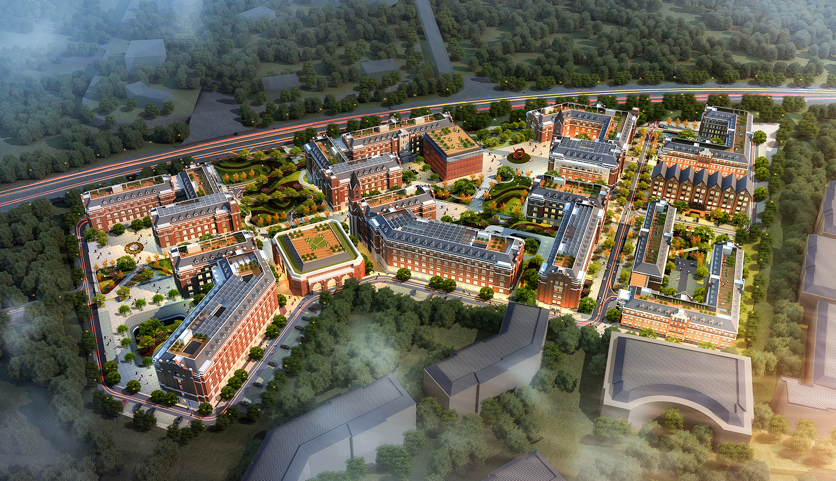 本項目位于中德生態(tài)園東側(cè),東側(cè)、南側(cè)與九中相鄰,在設計時充分考慮周邊建筑現(xiàn)狀,采用紅磚灰頂?shù)挠⑹斤L格作為建筑立面。紅瓦灰頂,相互借勢,打造中德門戶建筑。