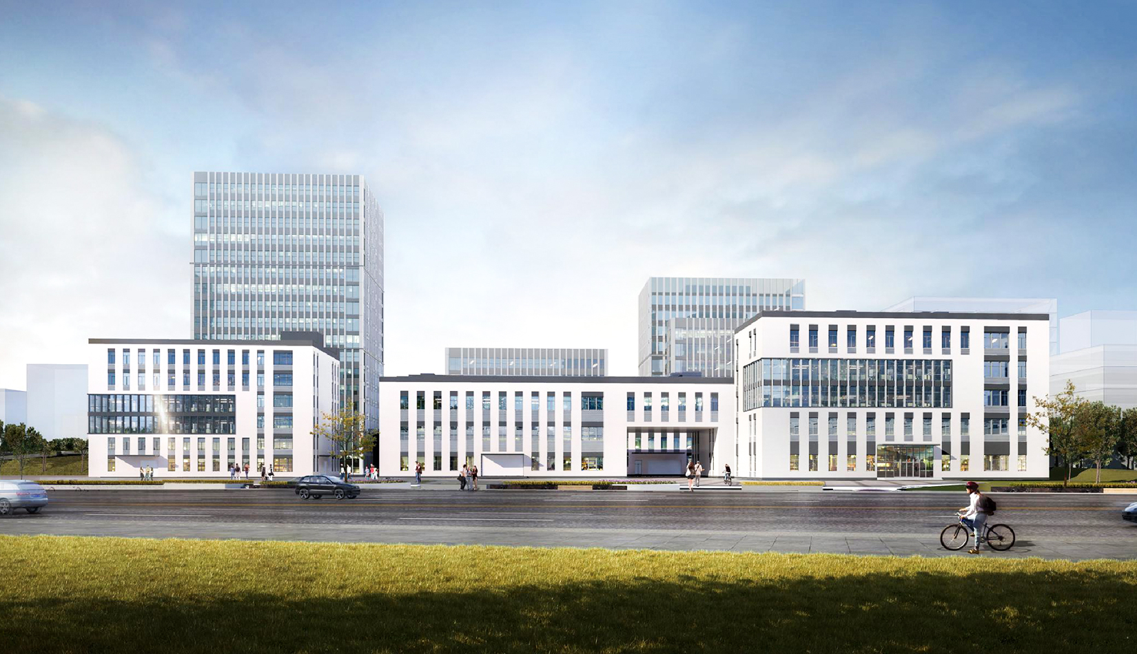 多組團——以園區(qū)道路劃分為多個工業(yè)組團空間,分為多層生產(chǎn)制造組團、高層生產(chǎn)研發(fā)組團以及園區(qū)配套辦公組團。