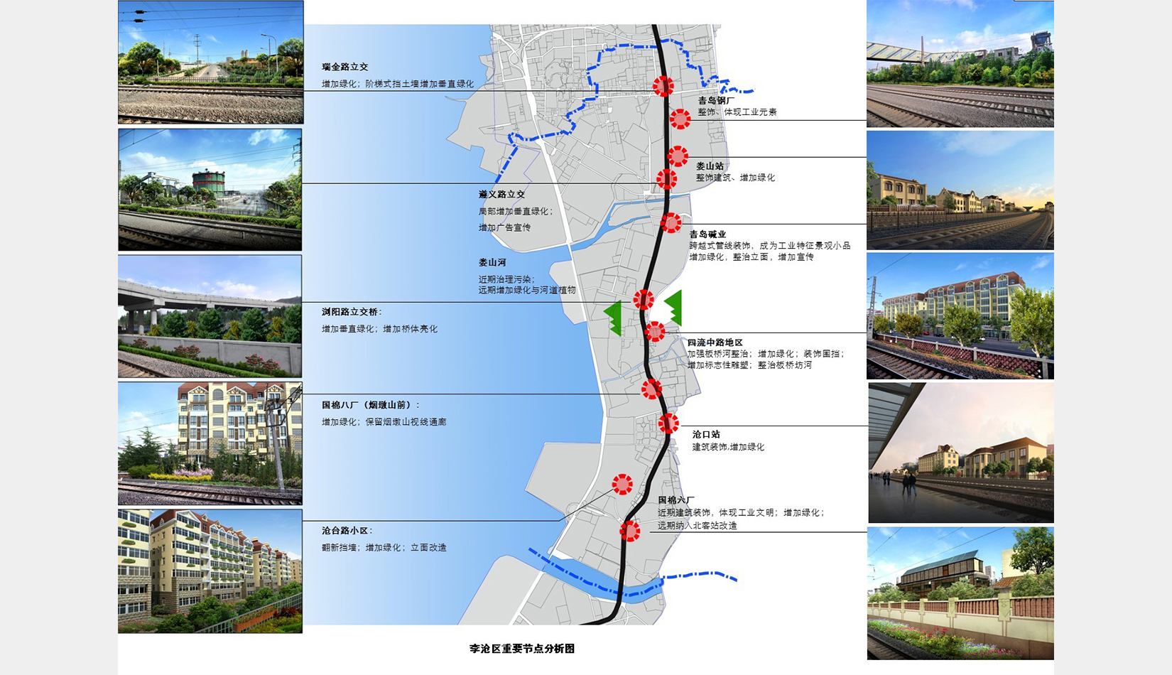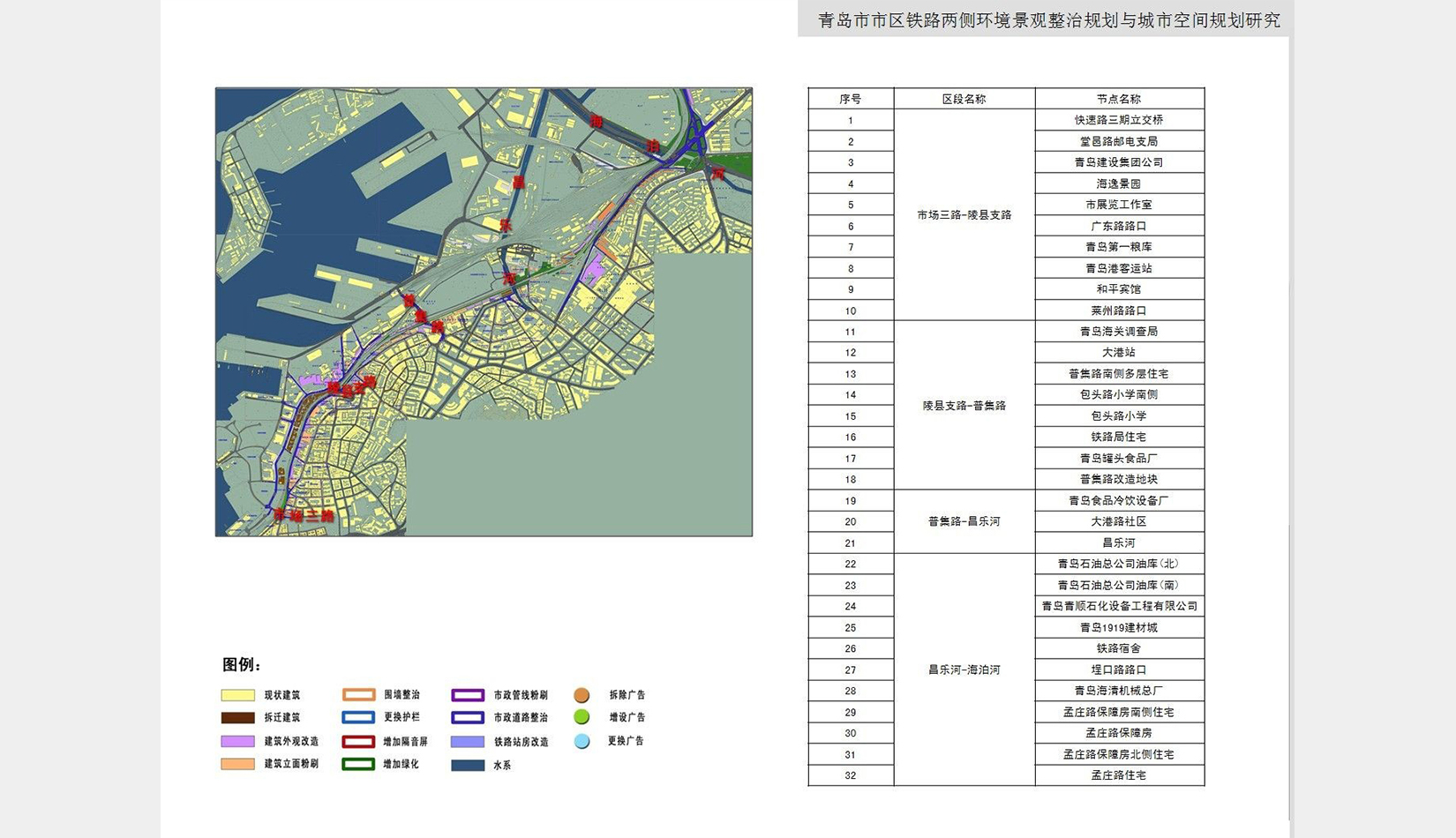 按照”一個(gè)目標(biāo)、分期實(shí)施、統(tǒng)一組織”的總體要求,規(guī)劃將鐵路沿線打造成為:體現(xiàn)青島城市規(guī)劃建設(shè)與管理水平的窗口; 展示青島城市熱情友好與和諧的笑臉;感受青島特色魅力與城市功能優(yōu)化提升的風(fēng)景線。