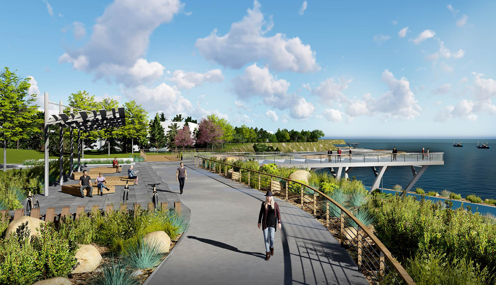 將藍(lán)谷濱海岸線打造為“海洋科技與海洋生活體驗的創(chuàng)新典范”,傳遞藍(lán)谷海洋氣質(zhì)的城市名片 參與海洋文化體驗的濱海公園 認(rèn)知海洋科技的城市客廳。