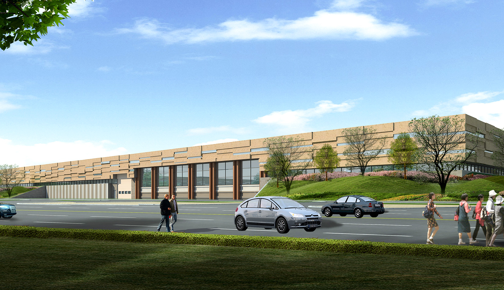 本項(xiàng)目中約68% 的建筑面積均為半地下建筑,建筑窗高度為4 米,對(duì)環(huán)境影響較大的主要生產(chǎn)工藝均在地下完成,有效做好了粉塵、噪音、氣味等在運(yùn)行及運(yùn)輸過(guò)程中的防護(hù)處理措施。
